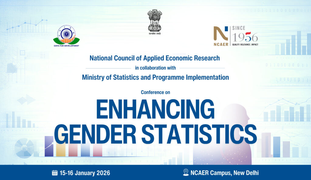 NCAER’s National Data Innovation Centre (NDIC), in collaboration with the Social Statistics Division, Ministry of Statistics and Programme Implementation (MoSPI), is organising a two-day conference on “Enhancing Gender Statistics” on 15–16 January 2026 at the NCAER campus in New Delhi. The conference will bring together policymakers, statisticians, researchers, and practitioners to discuss key challenges in measuring and using gender data. Through a series of technical sessions and discussions, the programme will explore issues related to women’s economic empowerment, gender biases in data collection, new and emerging data sources, gender and human capital, the Sustainable Development Goals, and evolving policy priorities. The conference aims to encourage exchange across institutions and disciplines, and to strengthen approaches to producing and using gender-responsive statistics in India.